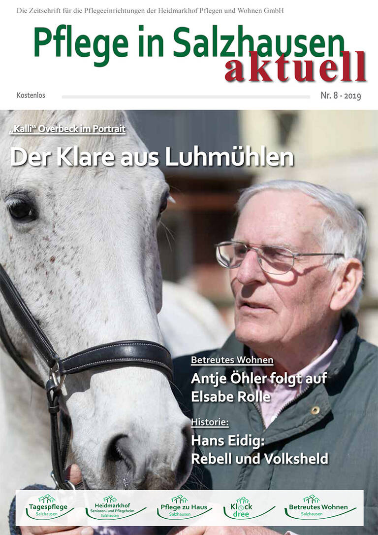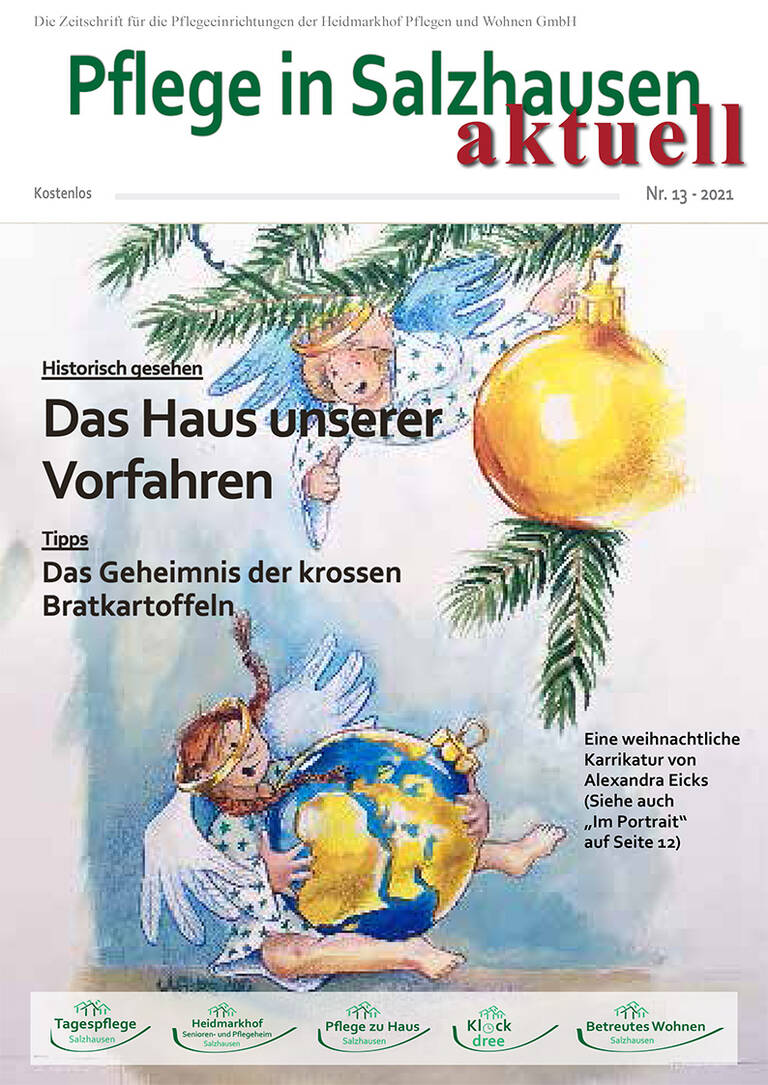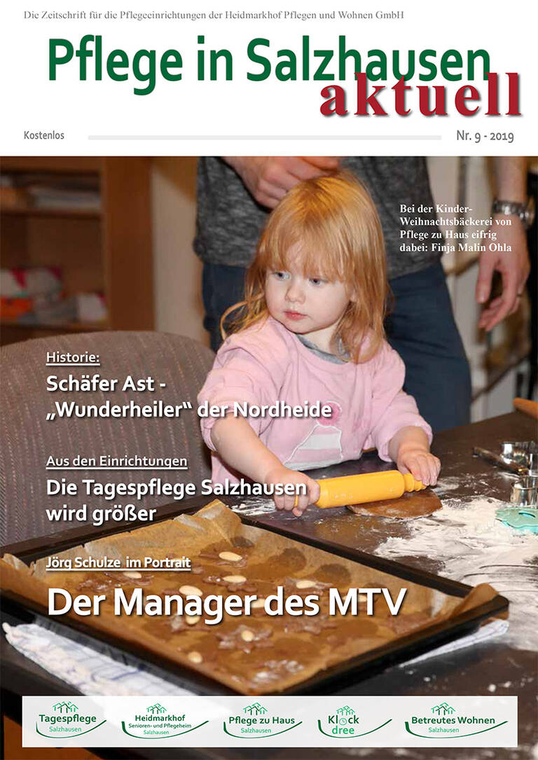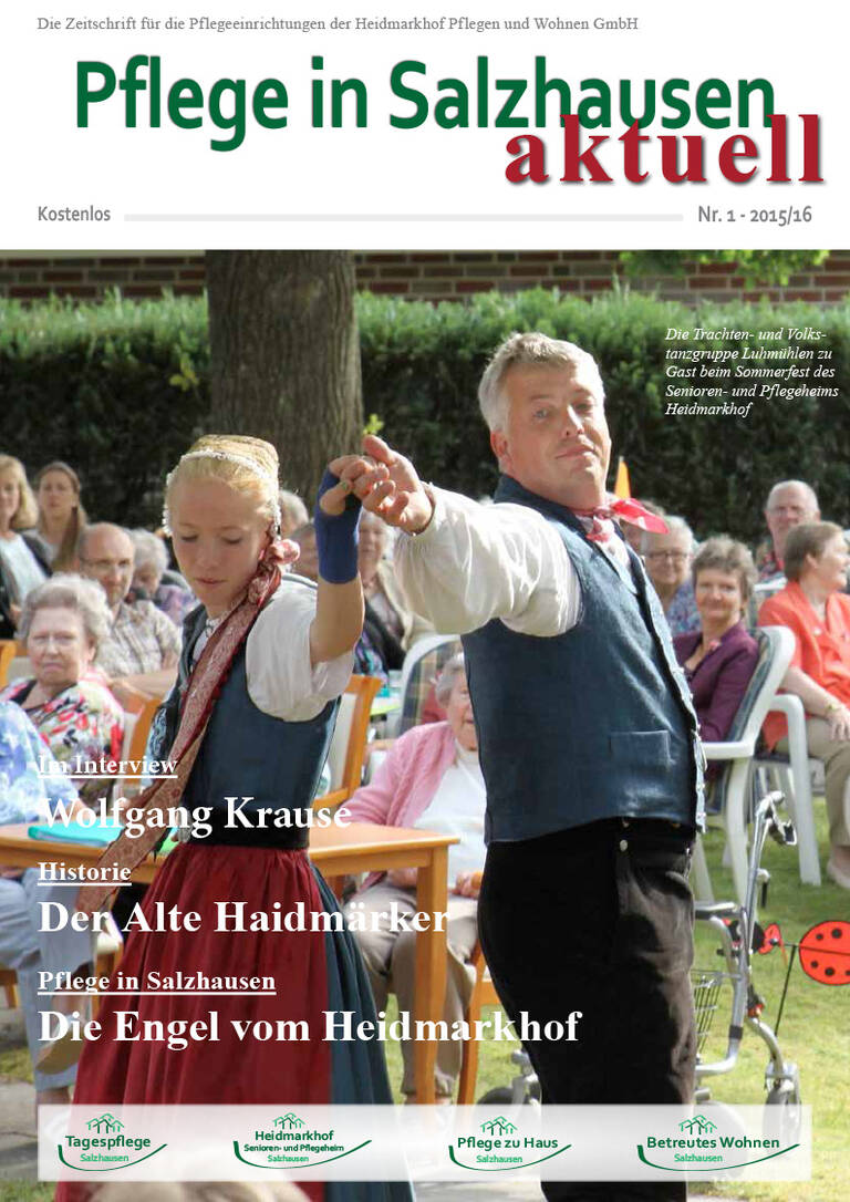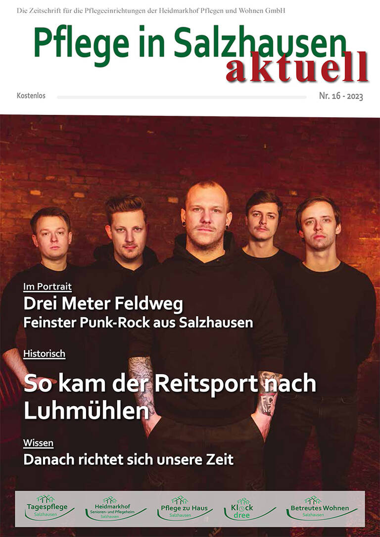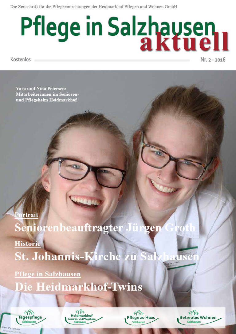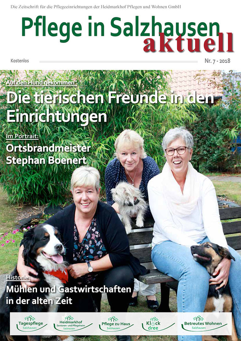 Stöbern Sie in unserem Archiv der Zeitschrift „Pflege in Salzhausen - Aktuell“ , welche für die Pflegeeinrichtungen der Heidmarkhof Pflegen und Wohnen GmbH herausgegeben wird. Die Zeitschrift erscheint jährlich und bietet viele Einblicke, Geschichten und Hintergrundberichte.